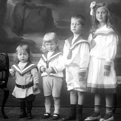 En faisant quelques recherches complémentaires j'ai découvert un excellent site sur la mode enfantine "Les petites mains, histoire de mode enfantine" , dans lequel il y a entre autre une série d'articles très complets sur le costume marin, dont un plus spécifiquement sur le costume marin pour fillette.